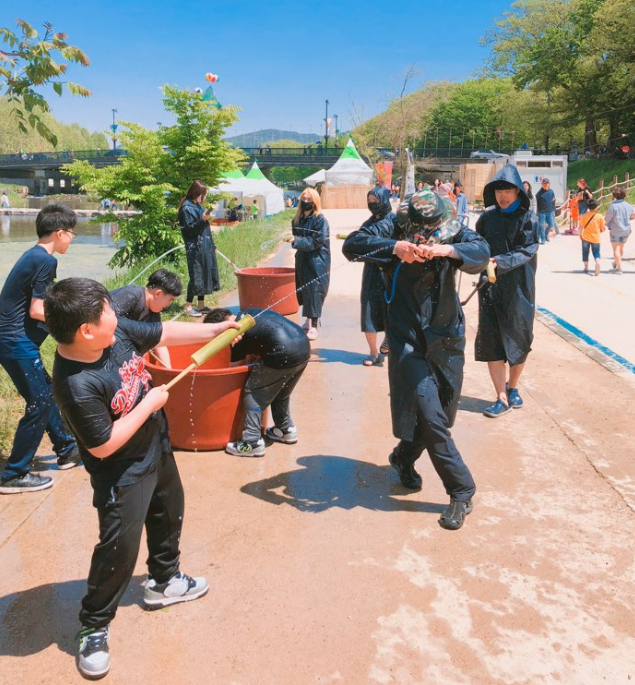 - 아이 동반 가족은 대나무 비눗방울 체험존 인기